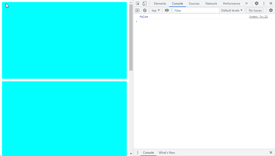 const target = document.querySelector('.target'); const observer = new IntersectionObserver((entries) => { entries.forEach(entry => { console.log(entry.isIntersecting); }); }); observer.observe(target);target 엘리먼트를 observer 객체의 observe 함수에 등록할 것인데, observer 객체는 IntersectionObserver 객체로써, 어떤 현재 가지고 있는 entries의 intersecting 여부를 출력하는 것입니다.