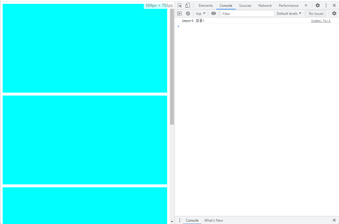 하늘색은 .card / 노란색은 .target 이다 .card{ background-color: aqua; height: 300px; margin-bottom: 10px; } .target{ background-color: yellow; height: 100px; margin-bottom: 10px; }.card는 그냥 공간을 무의미하게 차지하기 위해 만들었고, 실제 코드에서는 실제로 보여줄 어떤 엘리먼트라고 생각하면 됩니다.