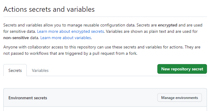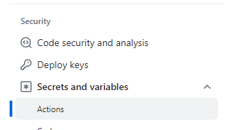 레포의 Settings에서 Security / Secrets and variables를 누른 후, Actions로 진입해주세요.