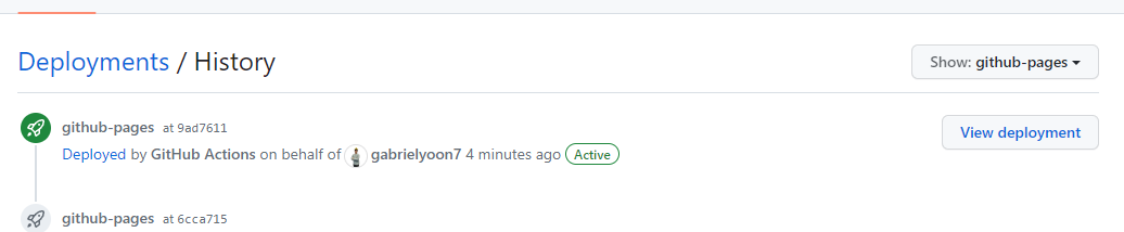 이후 레포의 Actions 탭에 들어가면 아까와는 다르게 2개의 배포 작업이 동시에 진행됩니다.
