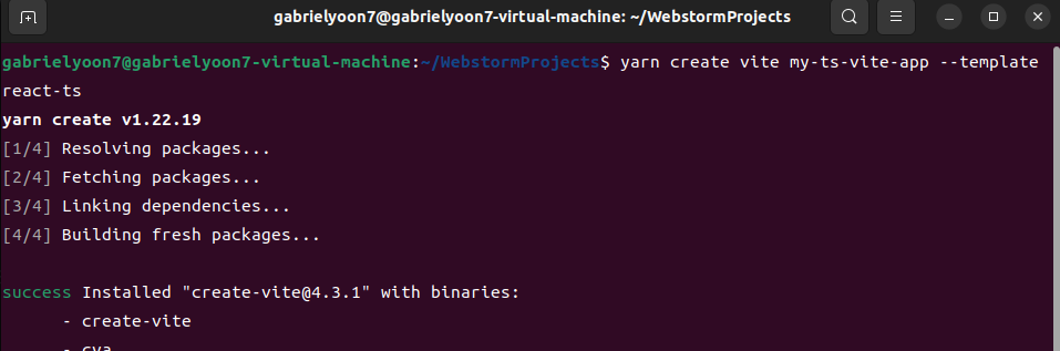 yarn create vite 프로젝트명 --template react-ts타입스크립트 템플릿으로 설치할 생각이 없다면 다른 템플릿도 존재합니다.