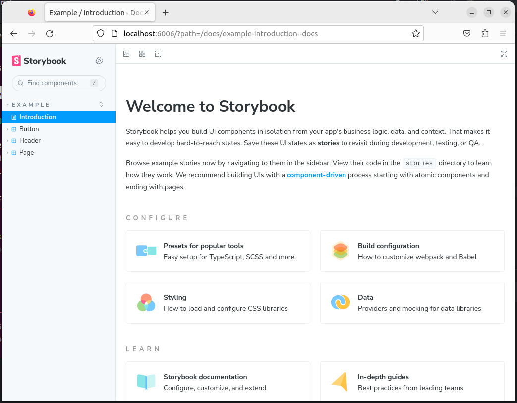 설치가 끝나면 yarn storybook으로 실행합니다.