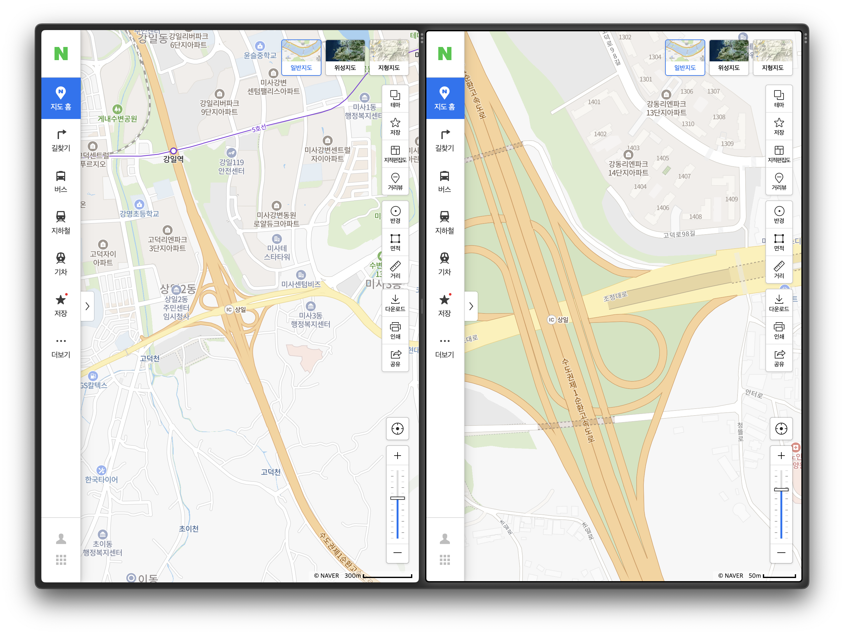 위 사진은 구글에서 제공하는 zoom 레벨을 동일하게 맞춘 후, 여러 디바이스에서 호출한 것입니다.