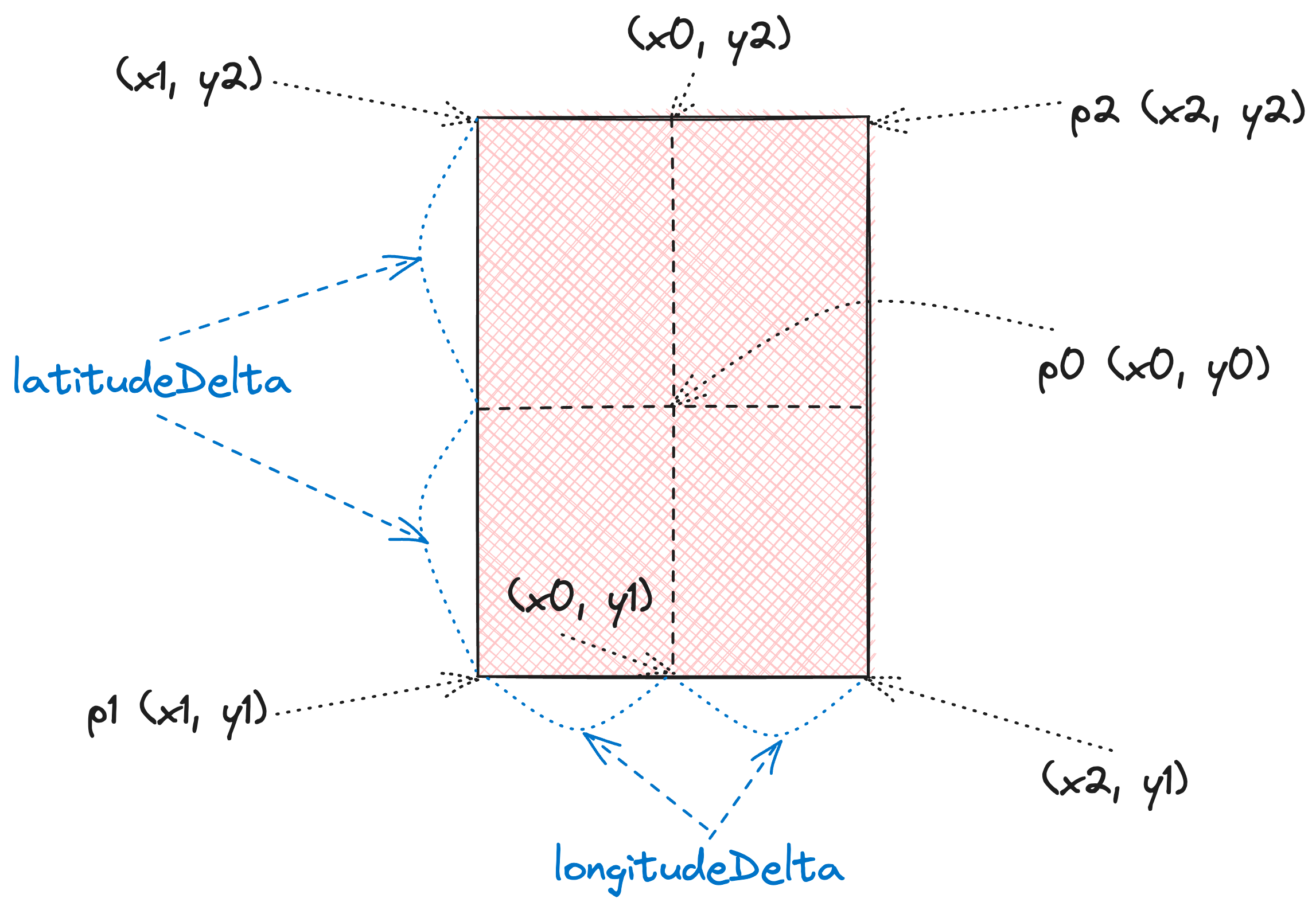y2 - y0 === y0 - y1이라는 결론을 얻을 수 있습니다.이를 latitudeDelta로 정의하겠습니다.