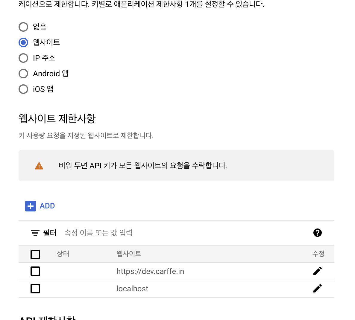 하지만 키 제한을 걸지 않았다면 누구나 사용할 수 있게 되므로 다음과 같이 적용하는 것을 권장합니다.