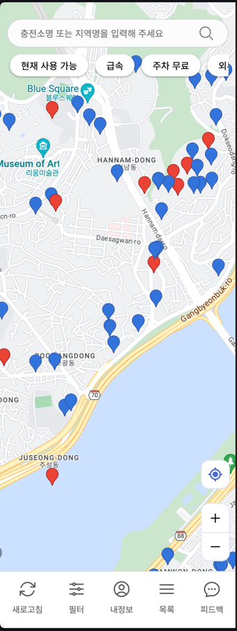 - 디바이스에 보여지는 지도 영역 확장에 제한이 생기지 않게 충전소 마커 클러스터링을 우선적으로 도입한다.