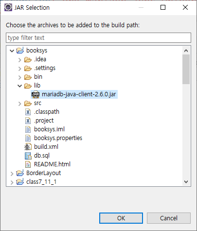 mariadb jar를 선택하고 OK합니다.