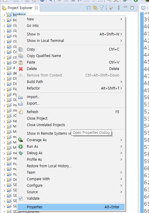 1. 프로젝트에 우클릭 후 Properties에 들어갑니다.