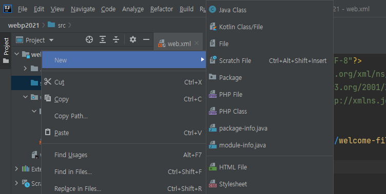 web폴더의 WEB-INF폴더의 web.xml을 열어줍니다.