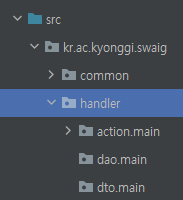 (이번 글에서는 dao와 dto는 설명하지 않으므로 action패키지만 넣어도 됩니다.)