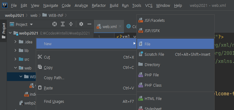 web - WEB-INF 폴더 안에 다음과 같이 디렉토리를 생성해줍니다.