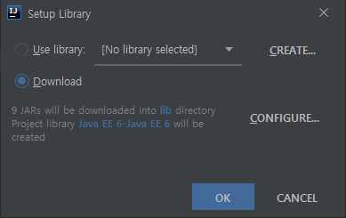 Libraries는 Set up library later에 체크합니다. 그리고 OK를 누릅니다.