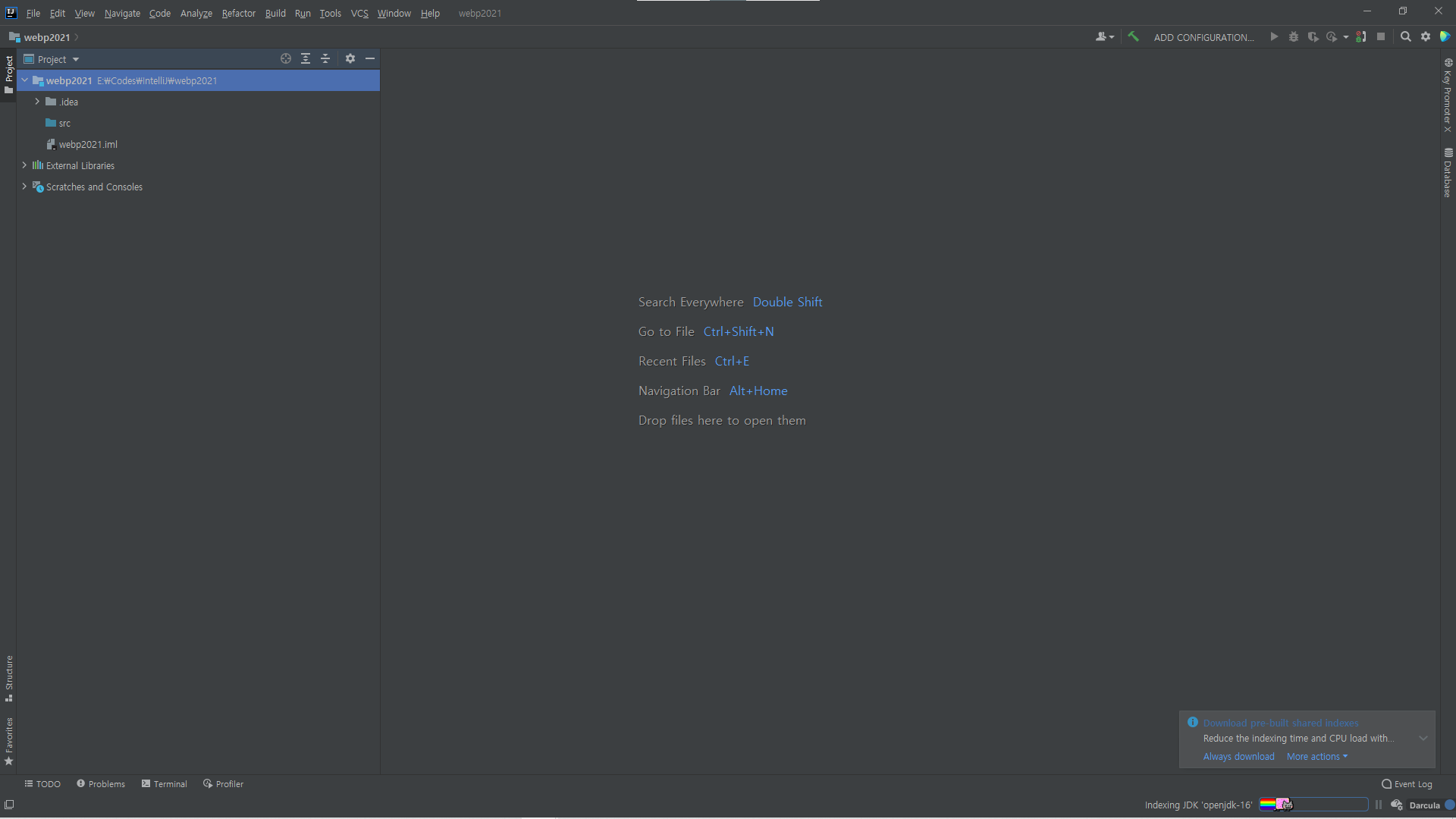 이제 Project SDK가 openjdk-16으로 된 것을 확인할 수 있습니다.