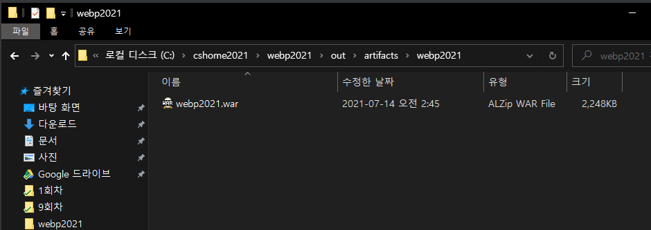 이런식으로 WAR 파일이 생긴 것을 확인하실 수 있습니다.