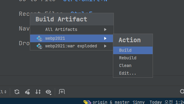 방금 만들어준 Artifacts에 마우스를 올려주고, Build를 누릅니다.